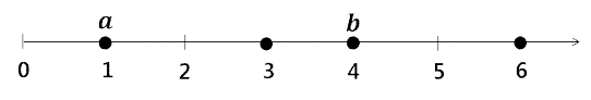 직선 위에 위치를 나타내는 0, 1, 2, ...와 같은 음수가 아닌 정수들이 일정한 간격으로 오른쪽 방향으로 놓여 있다. 이러한 위치들 중 N개의 위치에 하나씩 점들이 주어진다(<그림 1>). 주어진 점들의 위치는 모두 다르다. 두 점 사이의 거리는 두 점의 위치를 나타내는 수들의 차이이다. <그림 1>에서는 4개의 점이 주어지고 점 a와 b의 거리는 3이다.