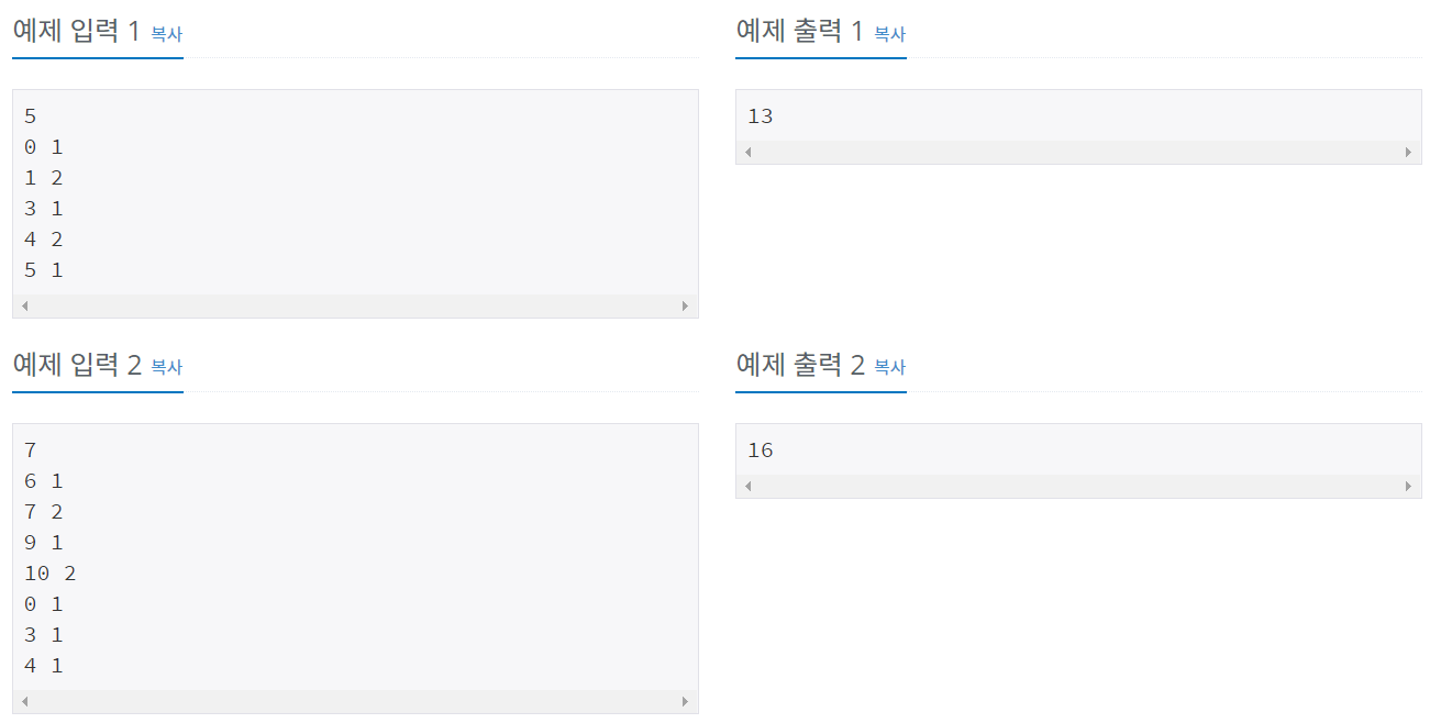 if (j == 0) distance += arr[i][1] - arr[i][0]; // 맨 처음부분 연산