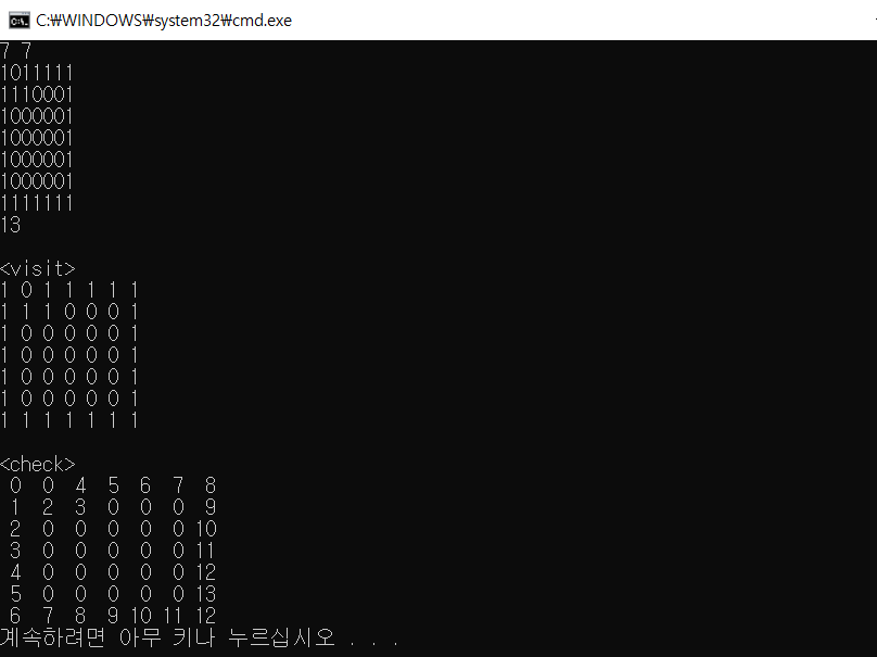 int check[101][101]; // 시작점으로부터의 거리 표시