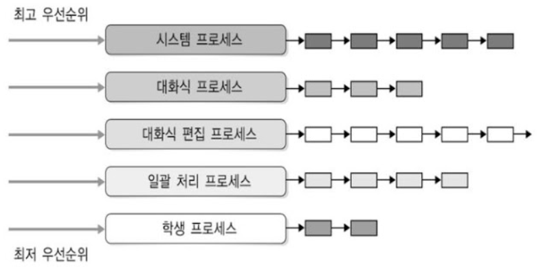- 우선순위마다 준비 큐 형성