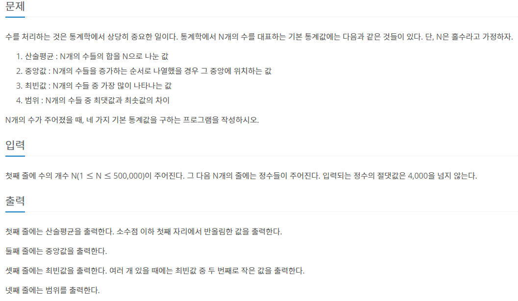 2108번: 통계학
