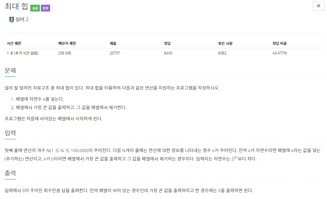 11279번: 최대 힙