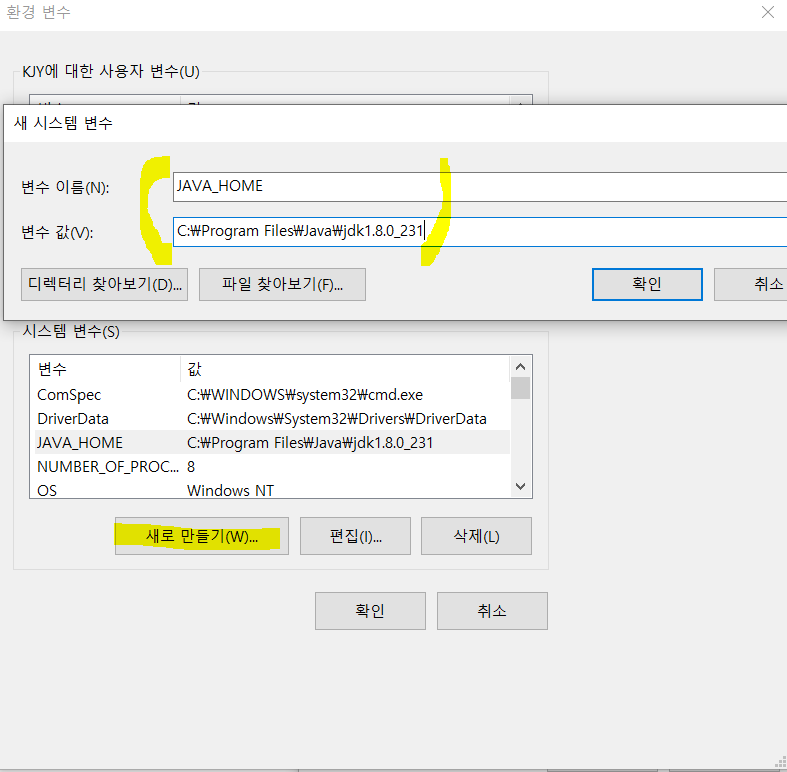 변숫값 : 각자 자바가 설치되어 있는 경로 입력 후 확인.