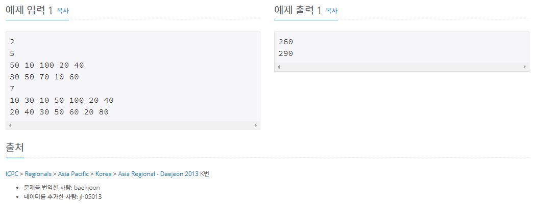 첫째 줄에 테스트 케이스의 개수 T가 주어진다. 각 테스트 케이스의 첫째 줄에는 n (1 ≤ n ≤ 100,000)이 주어진다. 다음 두 줄에는 n개의 정수가 주어지며, 각 정수는 그 위치에 해당하는 스티커의 점수이다. 연속하는 두 정수 사이에는 빈 칸이 하나 있다. 점수는 0보다 크거나 같고, 100보다 작거나 같은 정수이다.