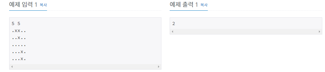 다음 R개 줄에는 빵집 근처의 모습이 주어진다. '.'는 빈 칸이고, 'x'는 건물이다. 처음과 마지막 열은 항상 비어있다.