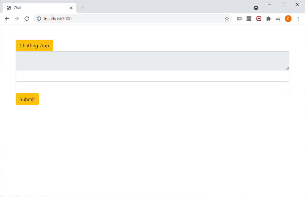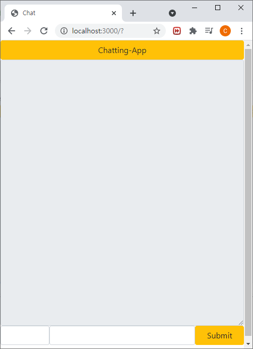 맨 하단 좌측에는 '익명 1', '익명 2'와 같은 사용자 name이, 가운데는 text 입력창, 오른쪽 submit 버튼은 사용자 name과 text 내용을 서버로 보내서 모든 사용자의 채팅 로그에 정보를 띄우는 것을 구현해보겠습니다.