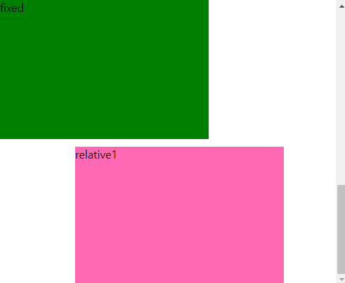 .fixed{width:300px; height:200px; background:green; top:0px; left:0px; position:fixed}