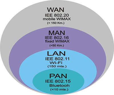 상대적으로 짧은 거리에 있는 컴퓨터를 연결. 예를 들어 사무실 , 학원, 병원의 모든 컴퓨터 연결 가능 - PAN(Personal Area Network) : 가장 작은 규모의 네트워크, 개인 네트워크