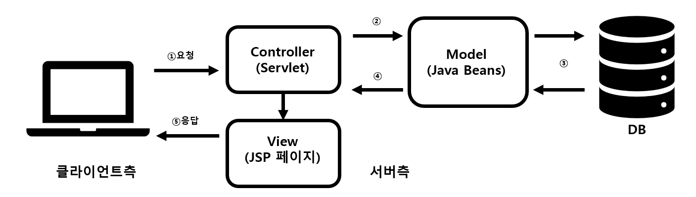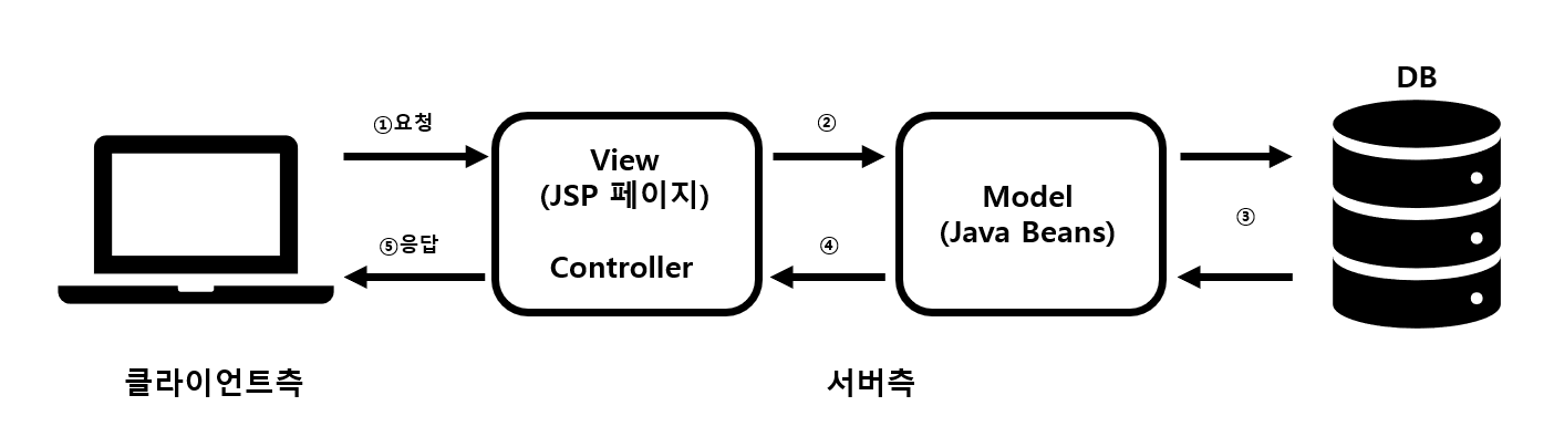- 모델 1 방식: JSP에서 출력과 로직을 전부 처리