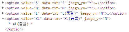 무신사 페이지에서 개발자 도구로 옵션 태그의 id를 알아내었고