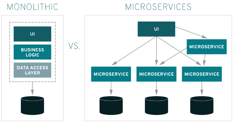 애플리케이션 개발 초기에는 전체 소스 코드를 하나의 배포 유닛 (war 또는 ear)으로 내장시키는 'Monolithic' 방식을 사용하였습니다. 하지만 기존 애플리케이션의 사소한 변경사항이 있더라도 자체적인 QA(Quality Assurance) 주기에 따라 업데이트를 하거나 일부 서비스 업데이트로 오류가 발생한 경우 전체 시스템을 중단하고 오류를 해결하는 등의 다운타임이 발생하는 일이 빈번하였습니다. 이러한 문제점을 해결하기 위해 애플리케이션의 핵심 서비스를 분할하는 MicroService Architecture라는 방식이 생겨났으며 각 서비스들을 독립적으로 구축하고 배포할 수 있게 되었습니다.