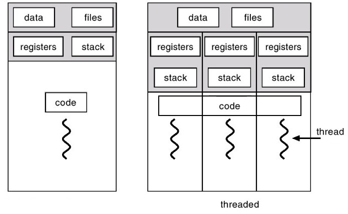 - 하나의 스레드에서 발생한 문제가 프로세스 전반에 영향을 미칠 수 있음