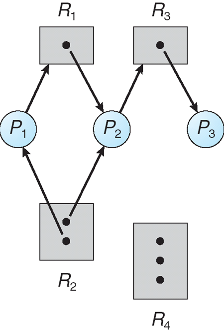 => 교착상태 X (P4가 R2를 해제하면 해결)