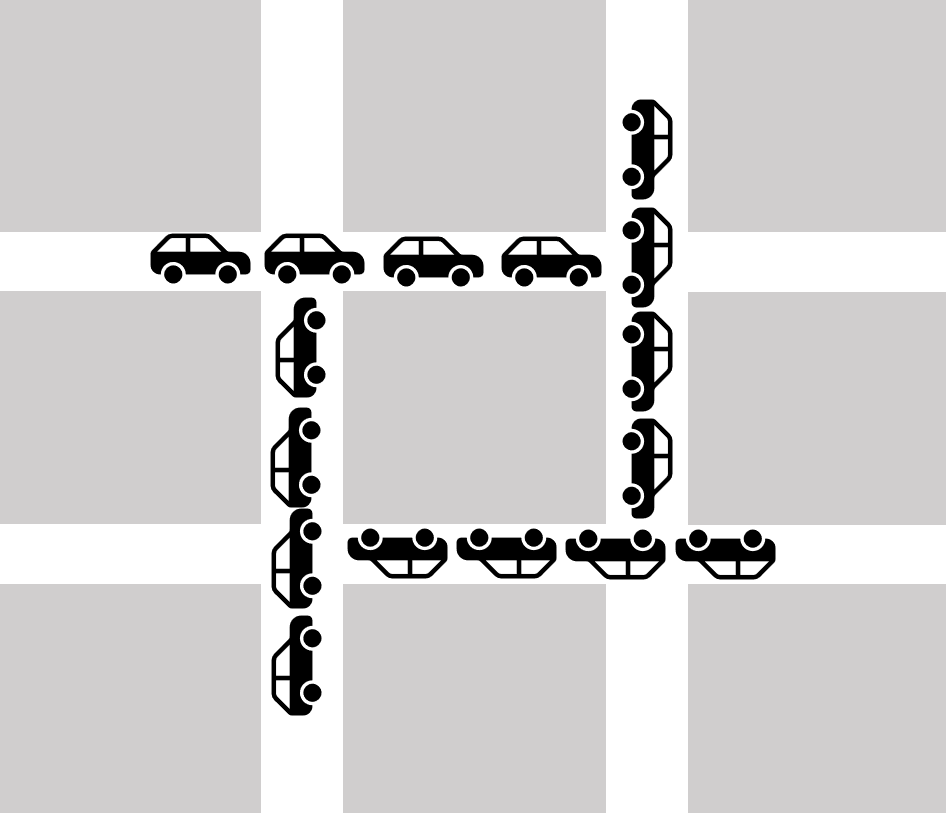 위의 그림과 같이 자동차(프로세스)들이 각각의 도로(자원)를 점유한 상태에서 다른 자동차(프로세스)들이 사용하고 있는 도로(자원)를 사용하기 위해 대기하고 있지만, 도로 위에서 이러지도 저러지도 못하는 상황을 예시로 들 수 있겠습니다.