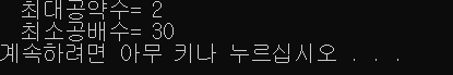 printf(" 최대공약수= %d\n 최소공배수= %d \n", GCD(6, 10), LCM(6, 10) );